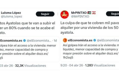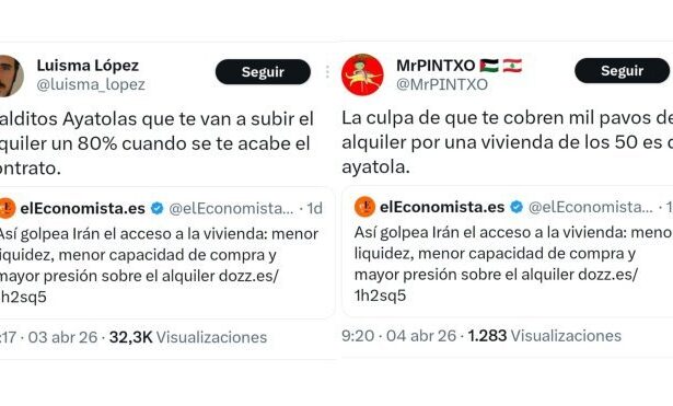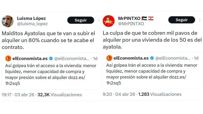 Polémica en redes por titular que responsabiliza a Irán de la crisis de vivienda en España Un titular publicado por el medio económico El Economista ha encendido la polémica en redes sociales al vincular la situación en Irán con la crisis de acceso a la vivienda en España. El artículo, difundido en la red social X, afirmaba: “Así golpea Irán…