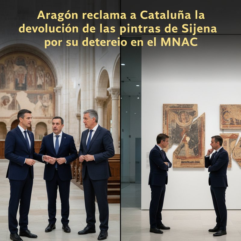 El Gobierno de Aragón ha denunciado públicamente el preocupante estado de conservación de las pinturas murales del Monasterio de Sijena, actualmente expuestas en el Museu Nacional d’Art de Catalunya (MNAC), en Barcelona. Las autoridades aragonesas insisten en la necesidad de cumplir la sentencia judicial que obliga a la devolución de estas obras a su emplazamiento original en Aragón.