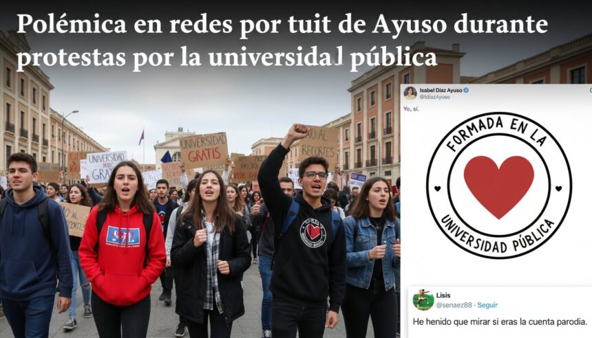 Polémica en redes por tuit de Ayuso durante protestas por la universidad pública