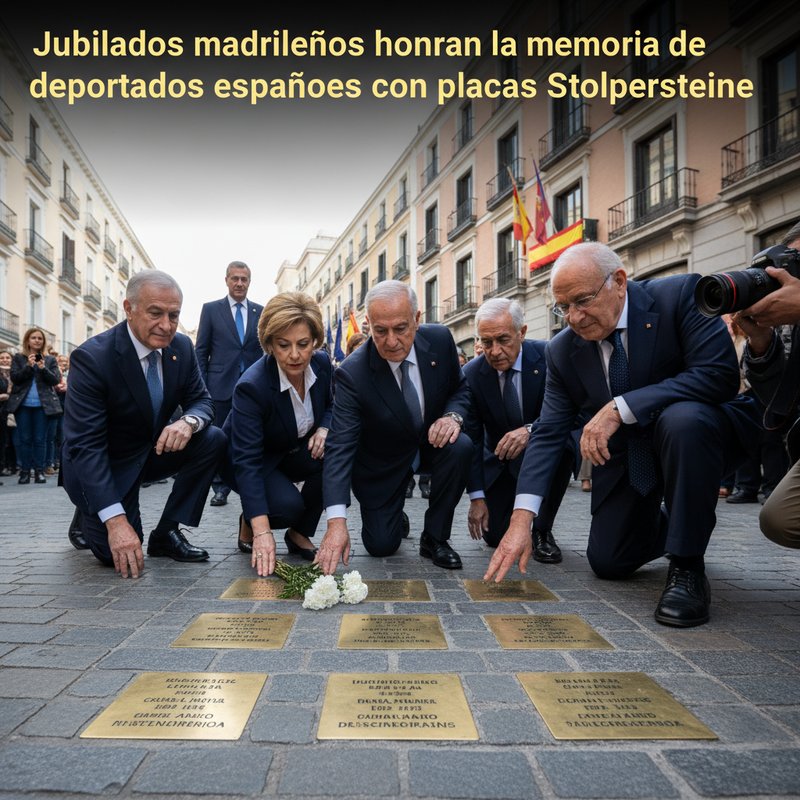 Jubilados madrileños honran la memoria de deportados españoles con placas Stolpersteine