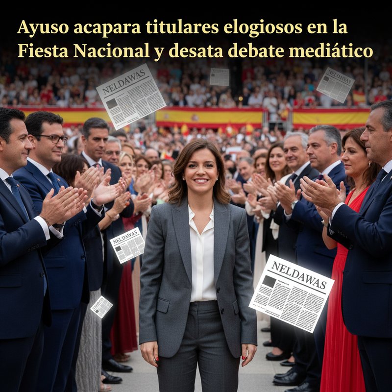 Ayuso acapara titulares elogiosos en la Fiesta Nacional y desata debate mediático