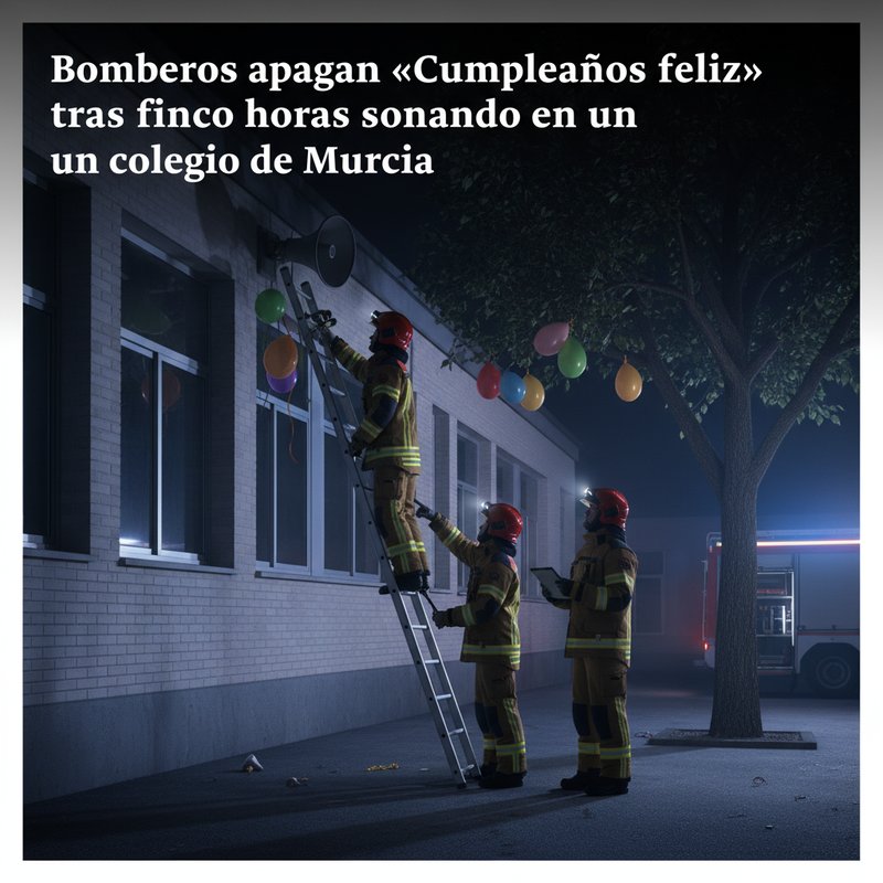 Un insólito incidente tuvo lugar la madrugada del martes en la localidad murciana de Javalí Viejo, donde los bomberos fueron requeridos para resolver una situación fuera de lo común: la melodía de “Cumpleaños feliz” interpretada por el grupo Parchís llevaba sonando ininterrumpidamente durante cinco horas a través de la megafonía de un colegio local.