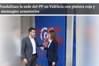 Vandalismo en la sede del PP en València: la fachada aparece con…