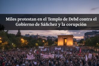 Multitudinaria protesta en el Templo de Debod contra la “mafia de Sánchez”…