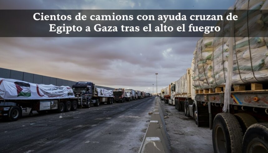 Cientos de camiones con ayuda cruzan de Egipto a Gaza tras el alto el fuego