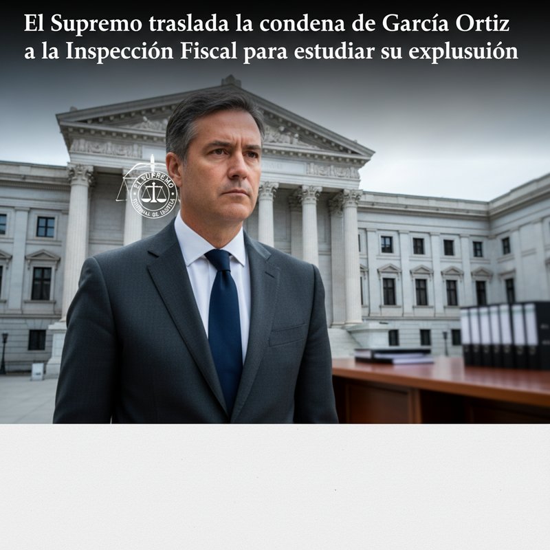 El Tribunal Supremo ha remitido la sentencia condenatoria contra el ex fiscal general del Estado, Álvaro García Ortiz, a la Inspección Fiscal de la Fiscalía General del Estado. El objetivo es que se estudie la posible expulsión de García Ortiz del Ministerio Público tras su condena por un delito de revelación de secretos.