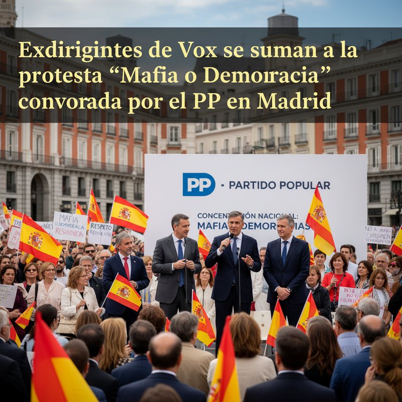 La manifestación convocada por el Partido Popular bajo el lema «Mafia o Democracia» reunió a miles de personas en la Plaza de España de Madrid, en torno al emblemático Templo de Debod. Aunque el partido Vox decidió no participar oficialmente en la protesta, sí llamó la atención la presencia de destacados exmiembros de la formación.