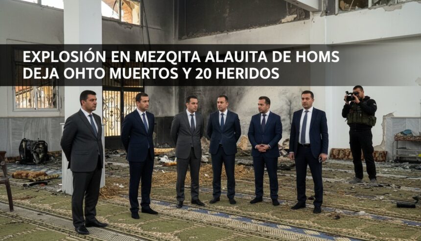 Una violenta explosión sacudió este viernes una mezquita de la comunidad alauita en la ciudad siria de Homs, provocando al menos ocho fallecidos y cerca de 20 personas heridas, según informaron fuentes oficiales sirias. El atentado ha sido reivindicado por el grupo extremista suní Ansar al Sunna, que ya ha perpetrado ataques similares previamente.