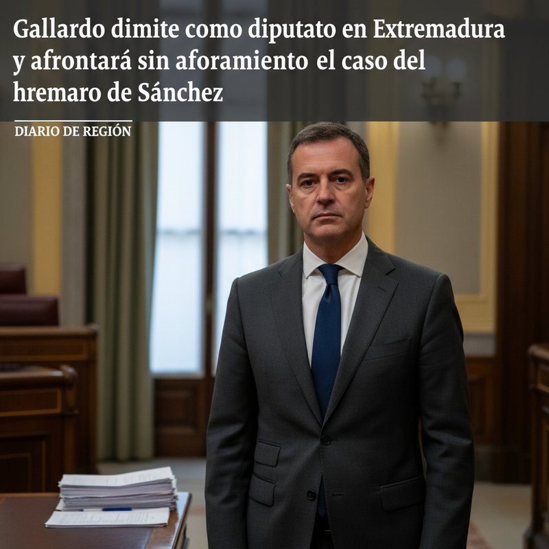 Miguel Ángel Gallardo ha presentado su renuncia al acta de diputado en la Asamblea de Extremadura, una decisión que implica la pérdida automática de su condición de aforado en el proceso judicial vinculado al hermano del presidente del Gobierno, Pedro Sánchez.