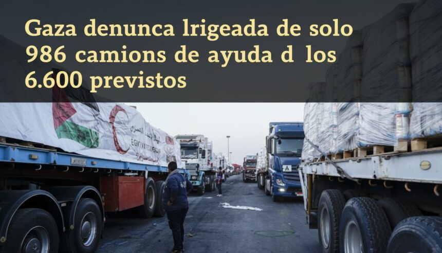 La crisis humanitaria en la Franja de Gaza continúa agravándose tras la denuncia emitida por la oficina de prensa del Gobierno gazatí, actualmente bajo control de Hamás. Según el último comunicado oficial, únicamente han accedido 986 de los 6.600 camiones de ayuda humanitaria programados desde la entrada en vigor del alto el fuego, una cifra que dista considerablemente de las necesidades reales de la población.