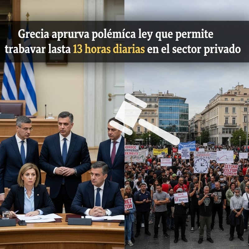 El Parlamento de Grecia ha aprobado una controvertida reforma laboral que permite a los trabajadores del sector privado extender su jornada hasta un máximo de 13 horas diarias. La medida, impulsada por el Gobierno conservador, ha generado intensas protestas de sindicatos y una fuerte oposición política.