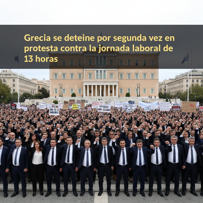 Grecia ha experimentado este martes una nueva jornada de paros que ha afectado gravemente los servicios públicos y de transporte, en protesta contra la propuesta de ampliar la jornada laboral hasta 13 horas al día. Se trata de la segunda gran movilización nacional en menos de dos semanas, reflejando el profundo rechazo social al polémico proyecto de ley impulsado por el Gobierno.