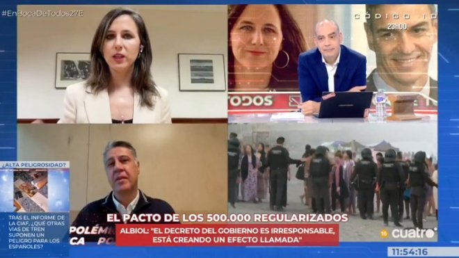 El debate giraba en torno a la nueva medida de regularización de personas migrantes que prepara el Gobierno de coalición, una iniciativa que ha recibido el apoyo de organizaciones sociales como Cáritas. Durante la discusión, Nacho Abad planteó una cuestión sobre la posible regularización de inmigrantes que pudieran haber cometido delitos antes de ser juzgados.