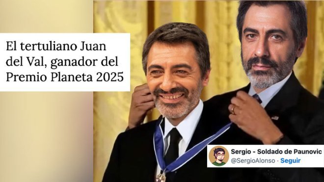El nombramiento de Juan del Val como ganador del Premio Planeta ha desatado una avalancha de reacciones en plataformas como X (anteriormente Twitter). Usuarios han aprovechado la ocasión para expresar, entre el humor y la sátira, su sorpresa por la elección del jurado. Los memes y comentarios irónicos no han faltado, con referencias a otros rostros televisivos y a la supuesta afinidad de los premiados con el Grupo Planeta, propietario tanto de la editorial como de Antena 3.