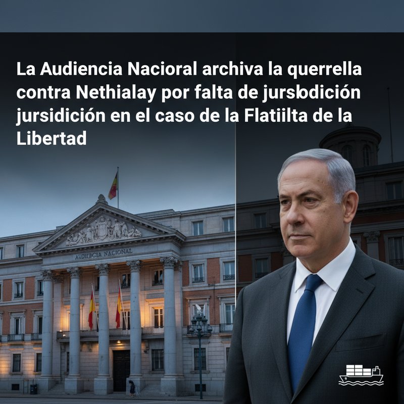 La Audiencia Nacional ha decidido archivar la querella presentada contra el primer ministro de Israel, Benjamin Netanyahu, y varios altos cargos militares israelíes, por el asalto a la embarcación Madleen, que formaba parte de la Flotilla de la Libertad con destino a Gaza el pasado 8 de junio.