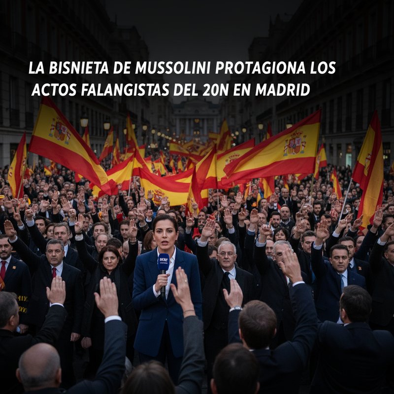 En el marco de la conmemoración anual del 20 de noviembre, la Falange ha anunciado la participación destacada de Orsola Mussolini, bisnieta del dictador italiano Benito Mussolini, en sus actos centrales en Madrid. La descendiente del líder fascista impartirá una conferencia durante el evento, en una jornada marcada por la reivindicación de discursos y símbolos vinculados tanto al fascismo como al franquismo.