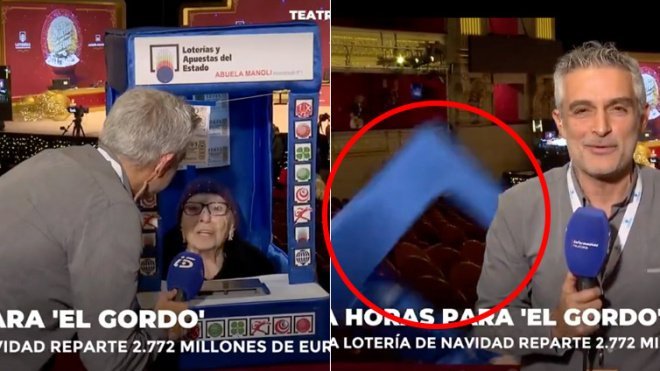 Durante una de las conexiones en directo, el equipo de Telecinco optó por entrevistar a Manoli, quien, vestida de manera festiva como si fuese una administración de lotería, aportaba simpatía y buen humor al ambiente tan característico de la jornada. Tras desear a los espectadores “que el año que viene os vuelva a ver”, Manoli se despidió del reportero. Sin embargo, justo en ese momento, y mientras el periodista enfocaba de nuevo a cámara, la mujer sufrió una aparatosa caída en segundo plano.