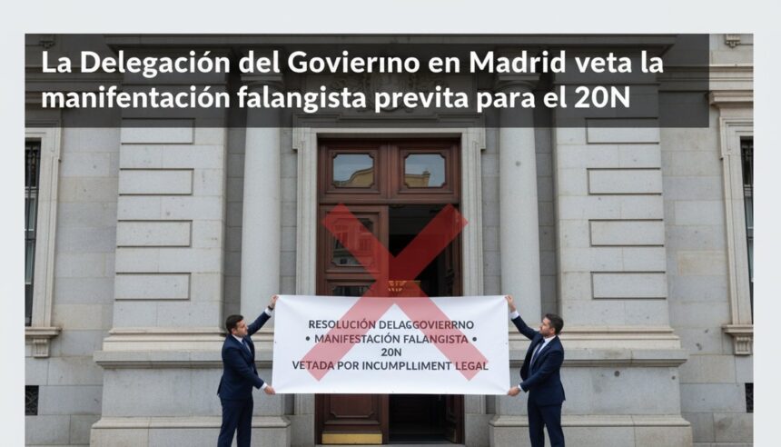La Delegación del Gobierno en Madrid ha decidido prohibir la manifestación que la organización La Falange tenía previsto celebrar el próximo 21 de noviembre en el centro de la capital, en conmemoración del 20N, bajo el lema No parar hasta reconquistar.