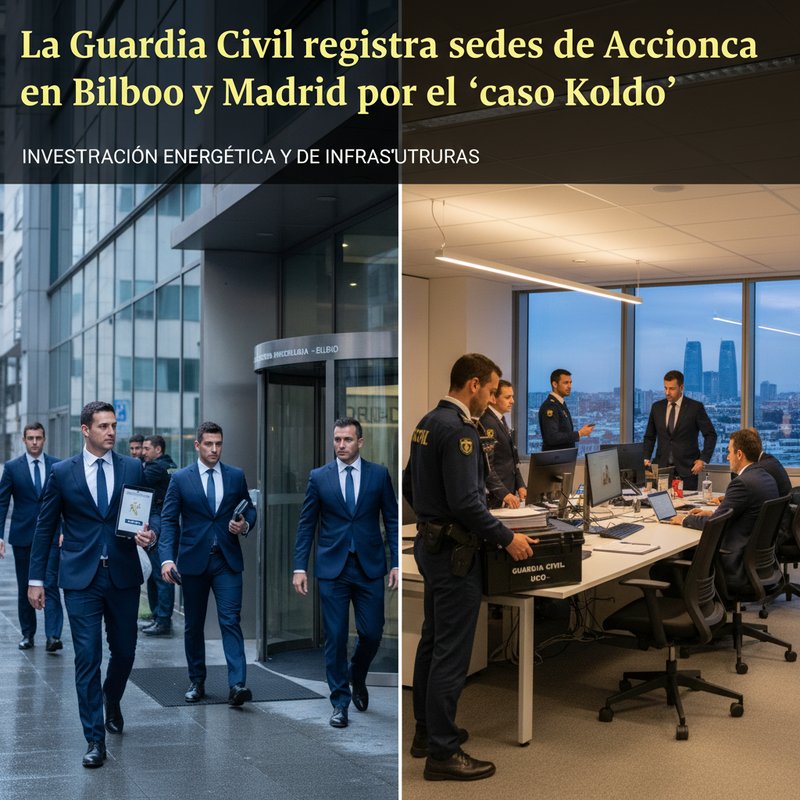Agentes de la Unidad Central Operativa (UCO) de la Guardia Civil han realizado este viernes registros en distintas instalaciones de la empresa Acciona en Bilbao y Madrid. Estas actuaciones se enmarcan dentro de una derivada del conocido como ‘caso Koldo’, que continúa bajo secreto de sumario.
