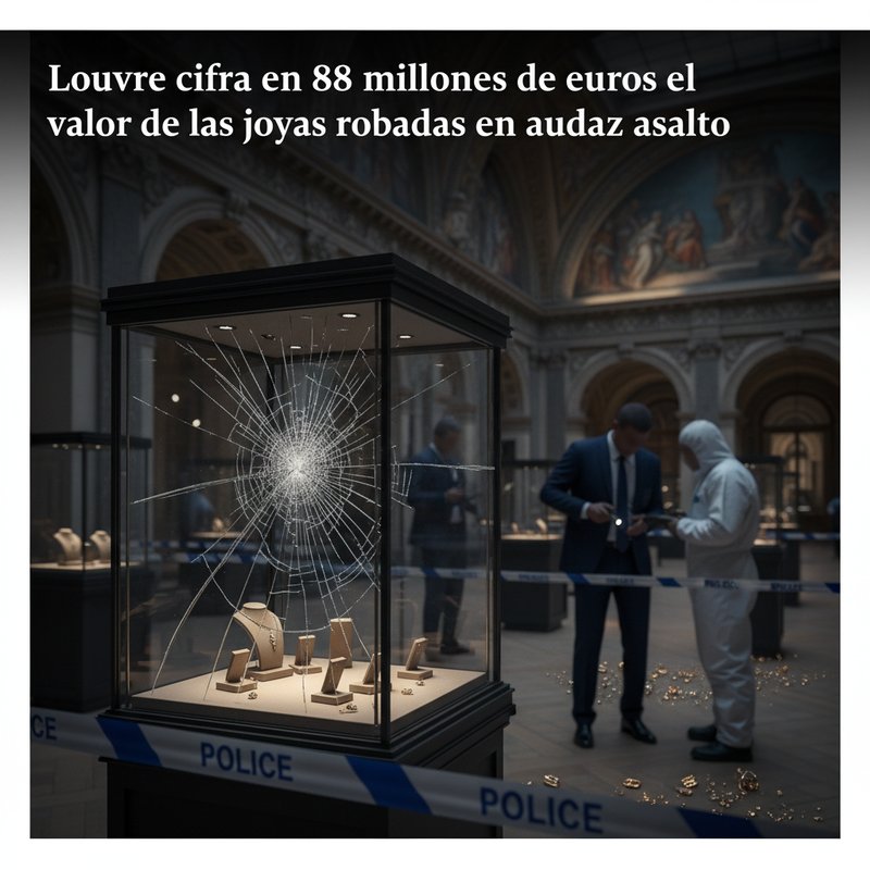 El Museo del Louvre ha estimado en 88 millones de euros el valor de las ocho joyas de la corona francesa sustraídas el pasado domingo en un audaz robo ocurrido en la emblemática Galería de Apolo. Así lo ha confirmado la fiscal Laure Beccuau este martes, quien además ha ofrecido detalles sobre el avance de las investigaciones.
