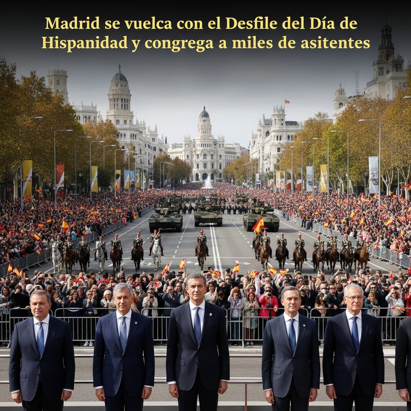 El tradicional desfile militar con motivo del Día de la Hispanidad ha congregado este 12 de octubre a miles de personas en las calles de Madrid, mostrando un ambiente festivo y de gran expectación desde primera hora de la mañana. La cita, que honra la Fiesta Nacional de España, ha contado con la participación de 3.847 efectivos de las Fuerzas Armadas, Policía Nacional, Guardia Civil y servicios de emergencia, consolidando su carácter multitudinario y solemne.