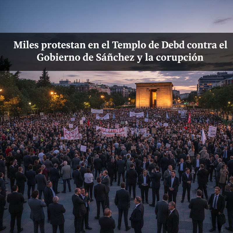 Miles de personas se congregaron este domingo en el Templo de Debod, en pleno centro de Madrid, para manifestar su rechazo al Gobierno de Pedro Sánchez en una jornada marcada por consignas contra la corrupción y en defensa de la democracia. Según cifras de la organización, alrededor de 80.000 asistentes desafiaron el frío y la amenaza de lluvia para participar en una concentración que, convocada por el Partido Popular (PP) con apenas tres días de antelación, se convirtió en un contundente acto de protesta ciudadana.