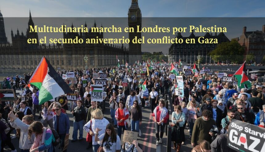 Londres fue escenario este sábado de una multitudinaria marcha en solidaridad con Palestina, coincidiendo con el segundo aniversario del inicio de la guerra en Gaza. La movilización se produjo un día después de la entrada en vigor del acuerdo de alto el fuego entre Israel y Hamás, y congregó a cientos de miles de personas en el centro de la capital británica.