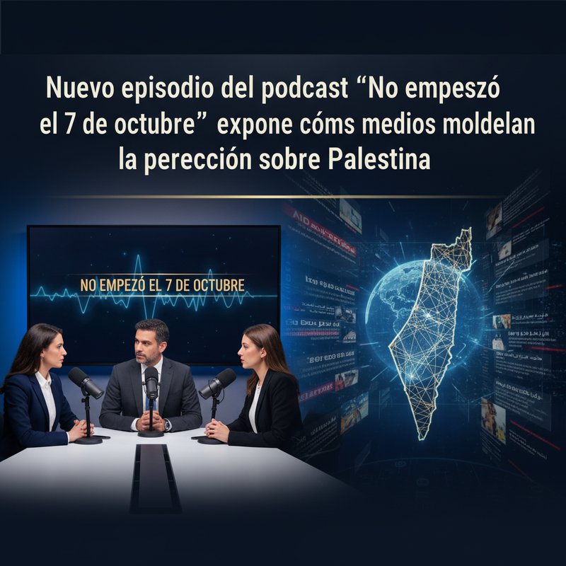 Esta semana se ha estrenado el quinto episodio del podcast “No empezó el 7 de octubre”, un espacio dedicado a analizar en profundidad las raíces y consecuencias del conflicto en Palestina, así como las estrategias mediáticas que influyen en la percepción pública internacional sobre la ocupación y el genocidio palestino.