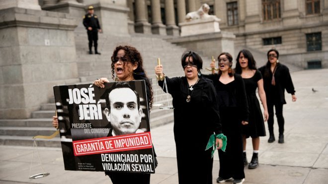José Jerí, el nuevo presidente interino, enfrenta graves cuestionamientos. Ha sido denunciado por violación, aunque la causa fue archivada por el actual fiscal general interino, Tomás Gálvez, quien a su vez está implicado en investigaciones sobre una red de corrupción judicial conocida como los Cuellos Blancos del Puerto. Además, Jerí está bajo investigación fiscal por presunto enriquecimiento ilícito y por solicitar un soborno de más de 37.800 euros a una empresaria.