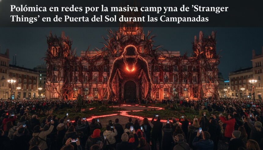La emblemática Puerta del Sol de Madrid se ha convertido en el epicentro de la última campaña promocional de ‘Stranger Things’, la serie insignia de Netflix, que se despedirá de la audiencia el próximo 1 de enero. La plataforma ha desplegado una ofensiva publicitaria sin precedentes en pleno corazón de la capital, coincidiendo con la celebración de las tradicionales Campanadas de Nochevieja, lo que ha generado un intenso debate en redes sociales.