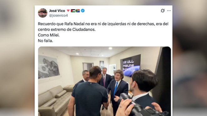 El gesto de Nadal, considerado por muchos como una simple cortesía, ha sido interpretado por otros sectores como una muestra de simpatía hacia el líder argentino, conocido por sus posiciones ultraderechistas. Entre los comentarios destacados en redes, destacan frases como: «Sabíamos que su derecha era potente, pero no tanto…», reflejando el malestar de algunos aficionados.