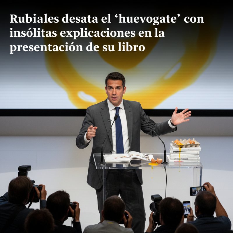 El evento, que debía centrarse en la promoción de su obra, se transformó en un auténtico espectáculo cuando un espontáneo irrumpió en la sala. Ataviado con gorro y auriculares, el hombre comenzó a lanzar huevos a Rubiales, generando momentos de confusión y sorpresa entre los asistentes.