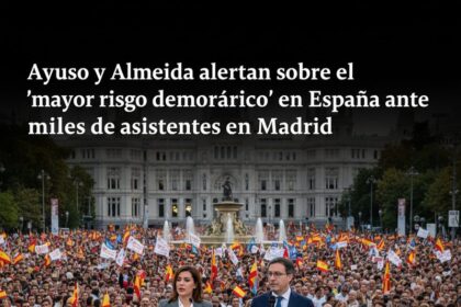 Ayuso y Almeida alertan sobre el «mayor riesgo democrático» en España ante miles de asistentes en Madrid