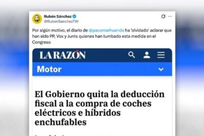 ‘La Razón’ silencia el papel de PP, Vox y Junts en el fin de la deducción fiscal para coches eléctricos