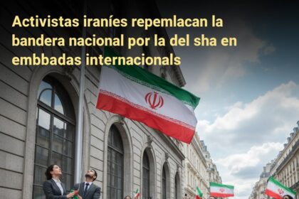 Activistas iraníes sustituyen la bandera nacional en embajadas de Irán por la…