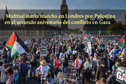 Multitudinaria marcha en Londres por Palestina en el segundo aniversario del conflicto en Gaza