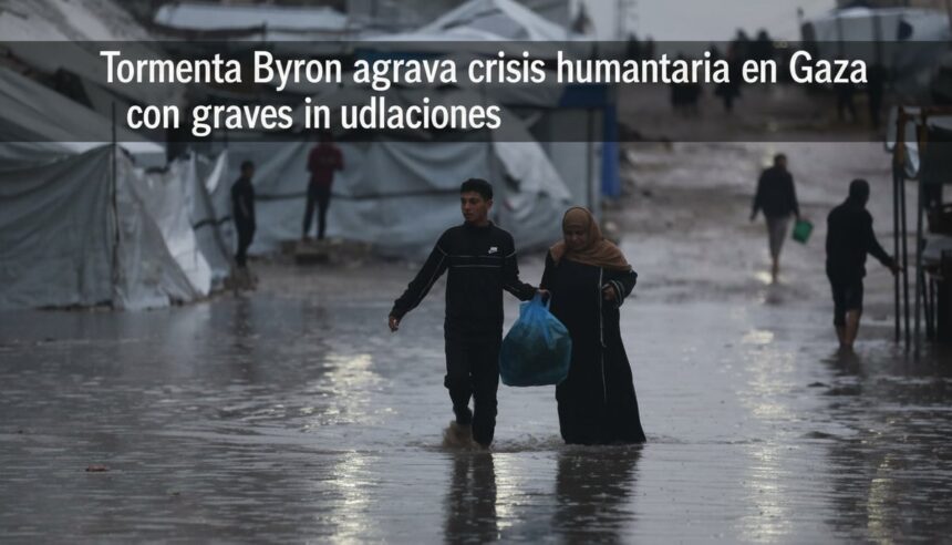La Franja de Gaza atraviesa una situación crítica después del paso de la tormenta Byron, que provocó intensas lluvias y fuertes vientos, inundando extensas áreas donde miles de personas residen en tiendas de campaña y refugios improvisados. La emergencia se suma a la ya delicada situación humanitaria que vive la población local.