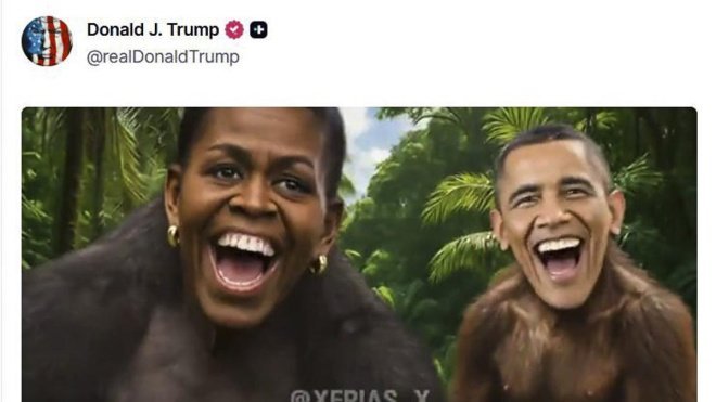 El expresidente de Estados Unidos, Donald Trump, ha generado una nueva polémica tras compartir en sus redes sociales un vídeo en el que se representa al exmandatario Barack Obama y a la ex primera dama Michelle Obama como simios. El contenido del vídeo, que utiliza imágenes históricamente asociadas a la deshumanización de personas de ascendencia africana, ha suscitado críticas inmediatas tanto a nivel político como social.