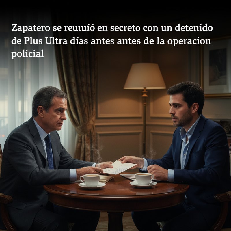 El expresidente del Gobierno, José Luis Rodríguez Zapatero, mantuvo un encuentro con uno de los detenidos en la denominada Operación Plus Ultra tan solo tres días antes de que la Policía Nacional procediera a los arrestos por presunto blanqueo de capitales. La reunión, que tuvo lugar en una zona de acceso limitado y sin cobertura en Madrid, refuerza el vínculo del exmandatario con la aerolínea rescatada en 2021 con fondos públicos.